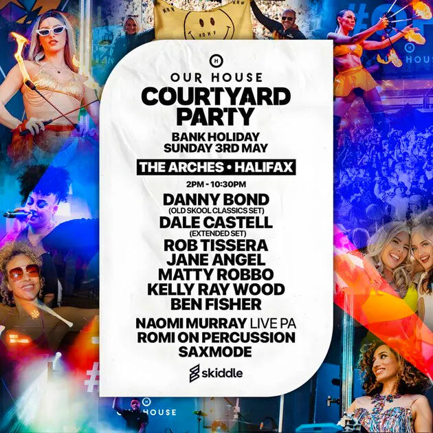 The Courtyard Party returns! Join the Our House Family for an incredible Bank Holiday Daytime event nestled within the iconic Dean Clough Mills in Halifax on Bank Holiday Sunday 3rd May!