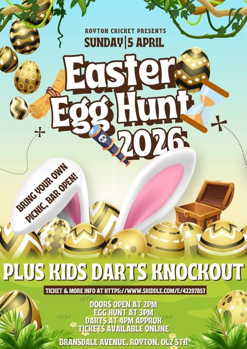 Nothing says Easter like an Easter egg hunt, and if you're looking for just that, then Royton Cricket Club has all your answers as they're hosting a Easter Egg Hunt you won't want to miss. And that's not all, with a darts competition, the kids will be able to get their competitive streaks on this Easter.