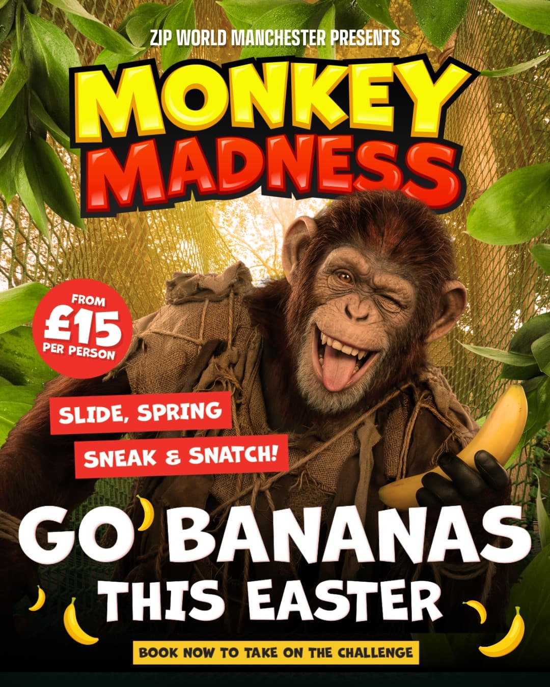 A little twist on an egg hunt this Easter as Zip World presents Monkey Madness. With a day waiting for you to have an unforgettable family adventure high above the ground in their giant Treetop Nets, it's up to you to Spring, slide and sneak your way through the nets to take back the Monkey's hidden stash of bananas.