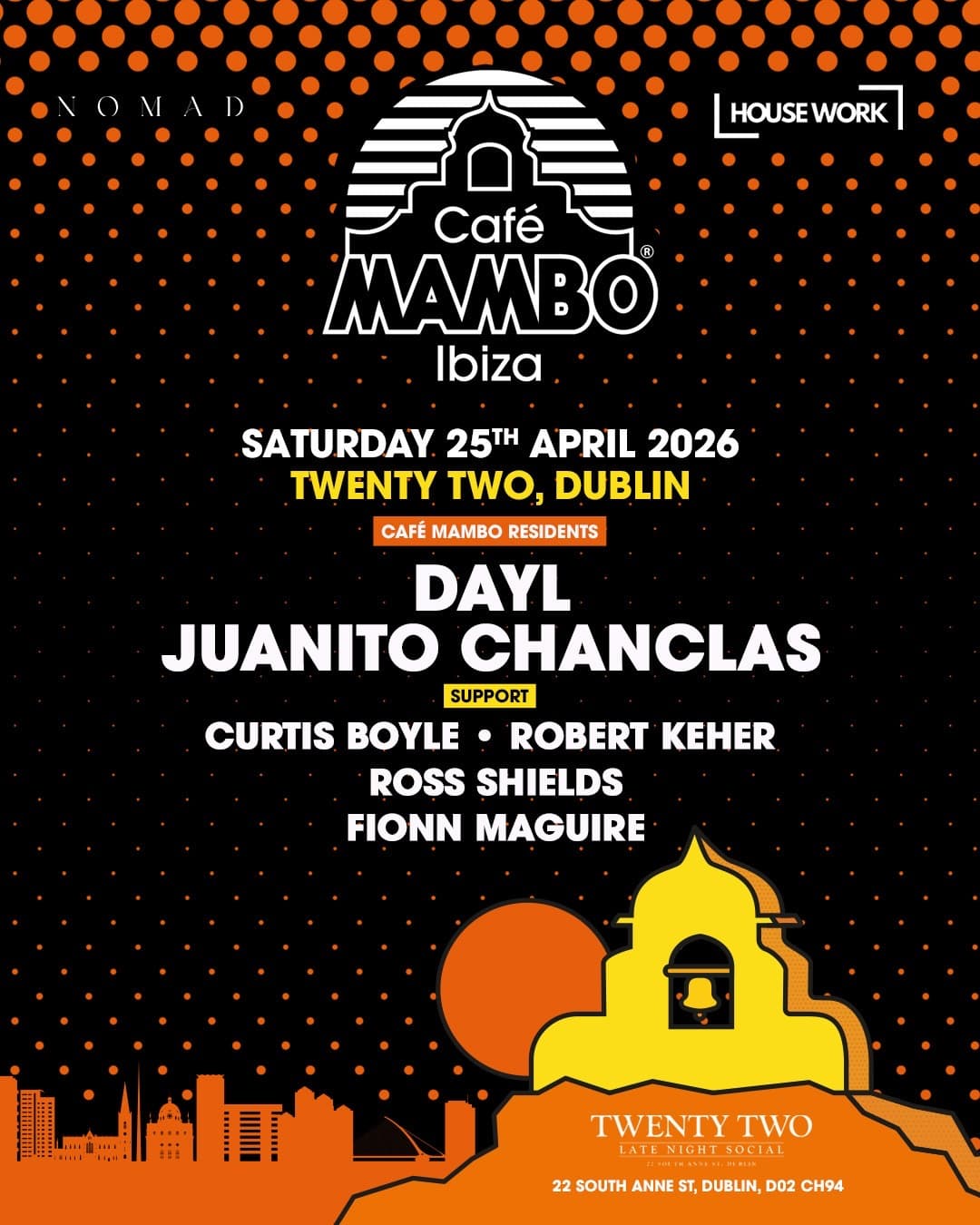 With both residents and local support from Dublin's best, the lineup includes Dayl, Juanito Chanclas, Curtis Boyle, Robert Keher, Ross Shields, and Fionn Maguire.