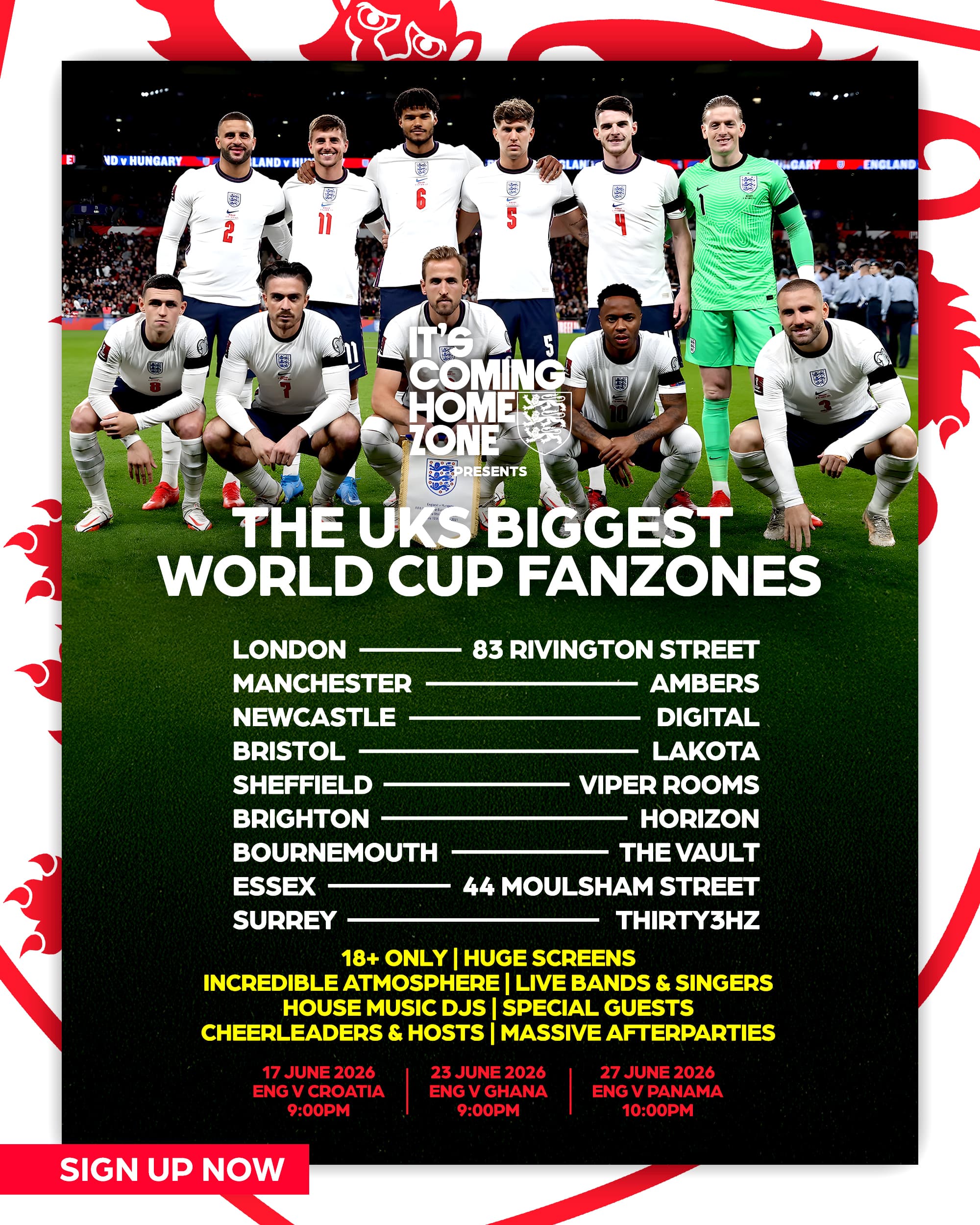 Announcing their return, It'sComingHomeZone is hosting a mass of screenings across the UK, including London, Manchester, Sheffield, Newcastle, Brighton, Bristol, Bournemouth, Essex and Surrey. Bringing in passionate England supporters, It'sComingHomeZone is one of the capital’s go-to live fan park experiences, turning major football fixtures into high-energy, stadium-style events.