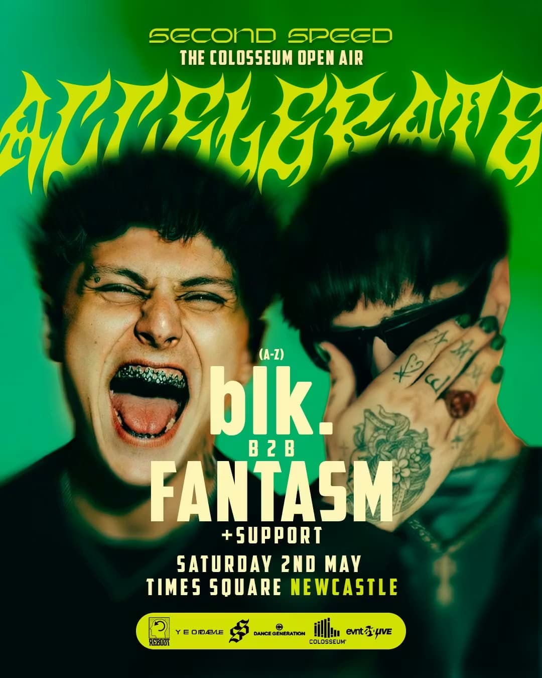 blk. & Fantasm are joining forces for a must-see B2B, transforming Times Square in the centre of Newcastle into an arena of sound for Second Speed’s largest open air takeover yet.