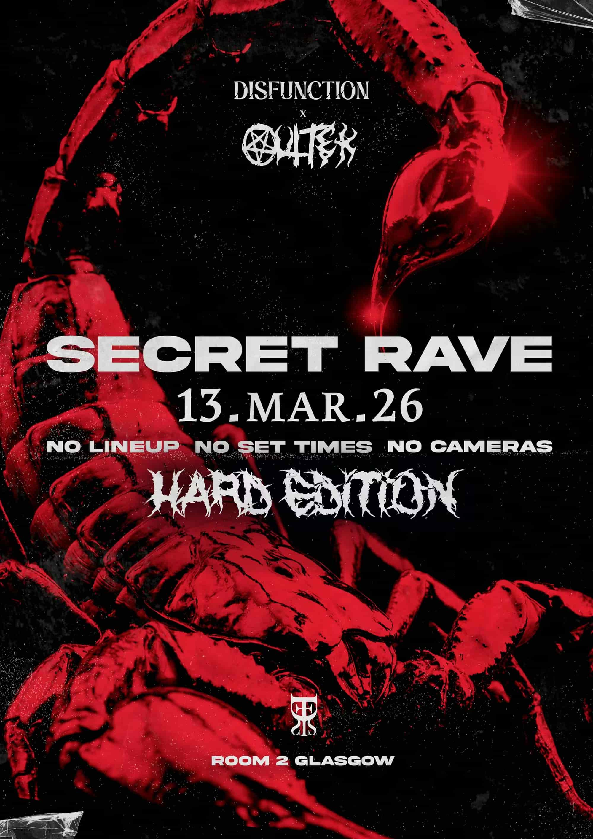 This one is a top secret affair. DISFUNCTION’s secret rave hasn’t made its lineup or set times public, but all you need to know is hardcore and hard dance are set to grace the dancefloors of Glasgow.