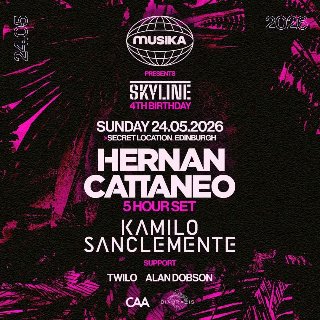 Musika presents Skyline’s fourth birthday this May Bank Holiday weekend. Spearheading the action is a 5 hour set from Argentine house veteran Hernan Cattaneo, alongside sets from Colombian superstar Kamilo Sanclemente and fellow Musika & Skyline residents.
