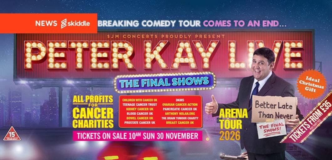 Peter Kay is bringing his record-breaking tour to an end with his final series of tour dates, and will be donating the profits to 12 cancer charities. The Bolton comic’s Better Late Than Never tour, which began in 2022 and has been repeatedly extended after shattering records, will run from December to August, where it will end at the AO Arena in Manchester, where Kay once worked as a steward.