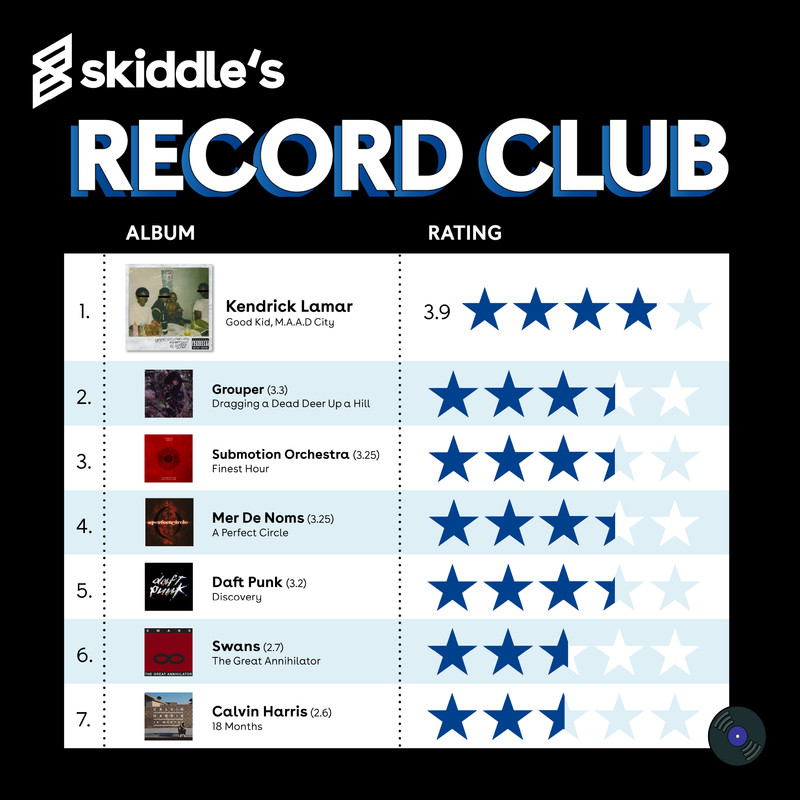 Others took the "didn't like" field a little more liberally: "This is the second time in record club that somebody has made me listen to ominous baby crying I swear if somebody has me on Dying Fetus or equivalent next then I quit." Let that be a lesson to you, Skiddle staff. No more samples of babies crying, please. Another listener took the chance to compare the record to Kendricks third, and highest-rated album - "It's very difficult to see which album is best. Good Kid M.A.A.D City vs To Pimp A Butterfly. Hard contest," probably not a bad record when one of the only complaints is whether its better than its sequel or not.