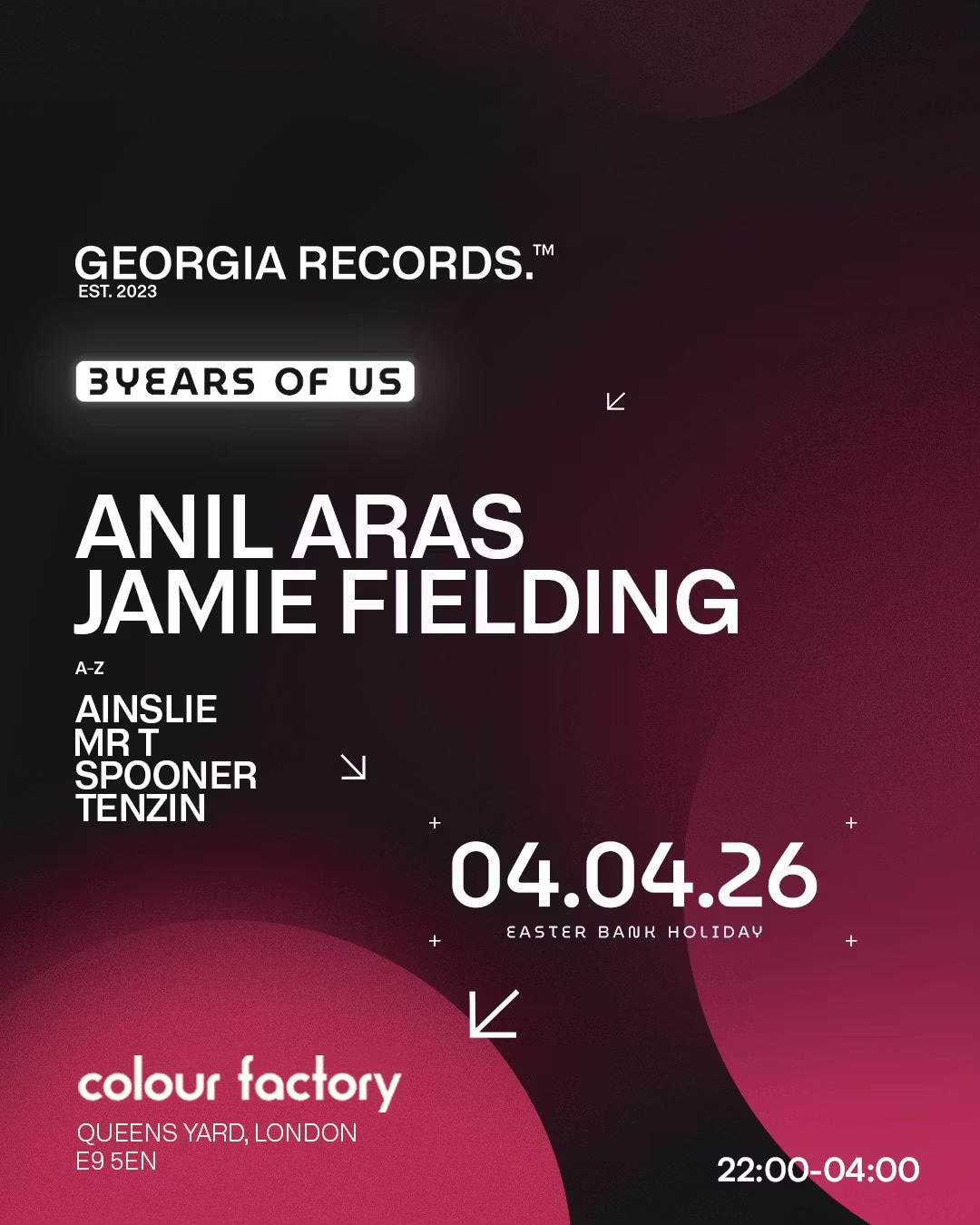 Georgia Records lands at Colour Factory for a stacked Easter session and third birthday party, bringing cutting-edge selectors to one of East London’s favourite underground venues.