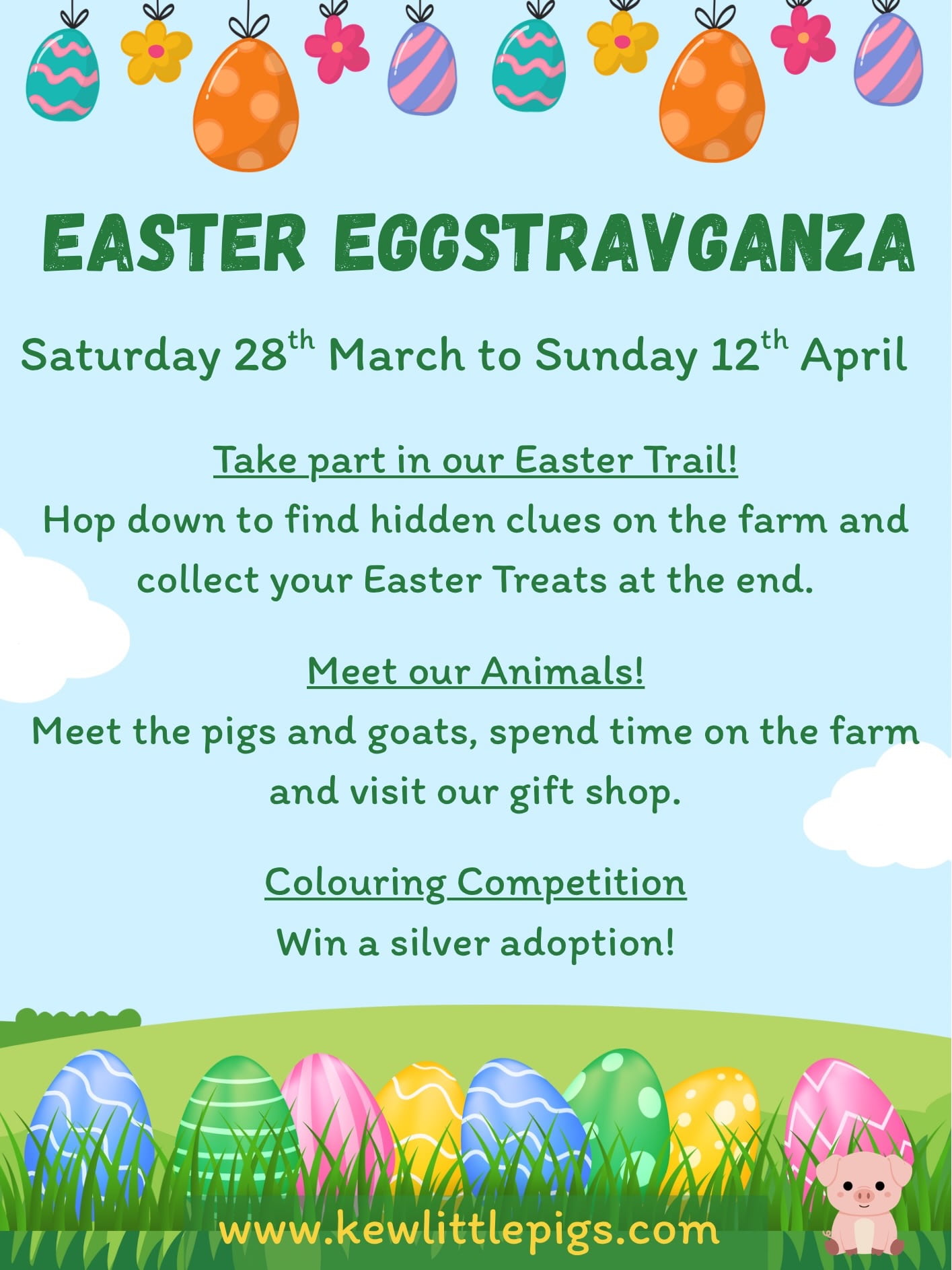Find dates and tickets for Easter Eggstravaganza at Kew Little Pigs Farm - HERE