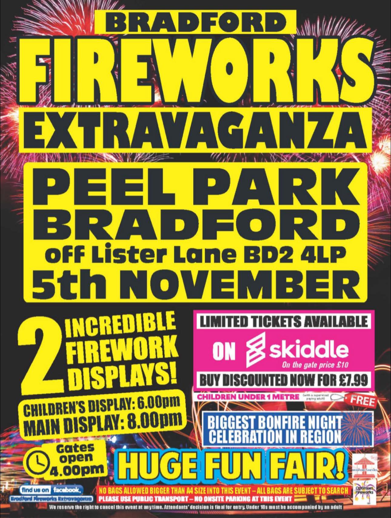 Bradford’s biggest firework celebration is back at Peel Park, and it’s set to be huge. Expect dazzling displays, food stalls, family-friendly entertainment, and a lively crowd atmosphere under the night sky. It’s the city’s flagship bonfire celebration — don’t miss it.