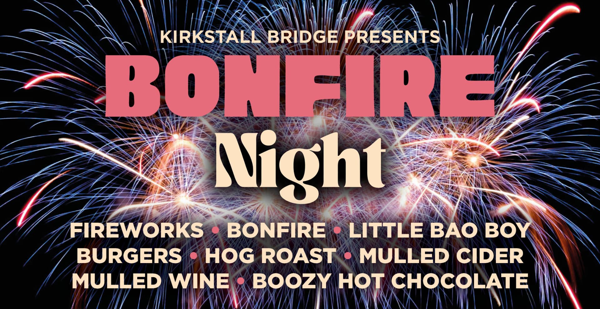 Few places do Bonfire Night in Leeds quite like the Kirkstall Bridge Inn. Their riverside garden features a massive bonfire, a spectacular fireworks display, an outdoor bar, and their renowned hog roast. Adults get a beer with their £9 ticket; kids get a soft drink with their £3 one.