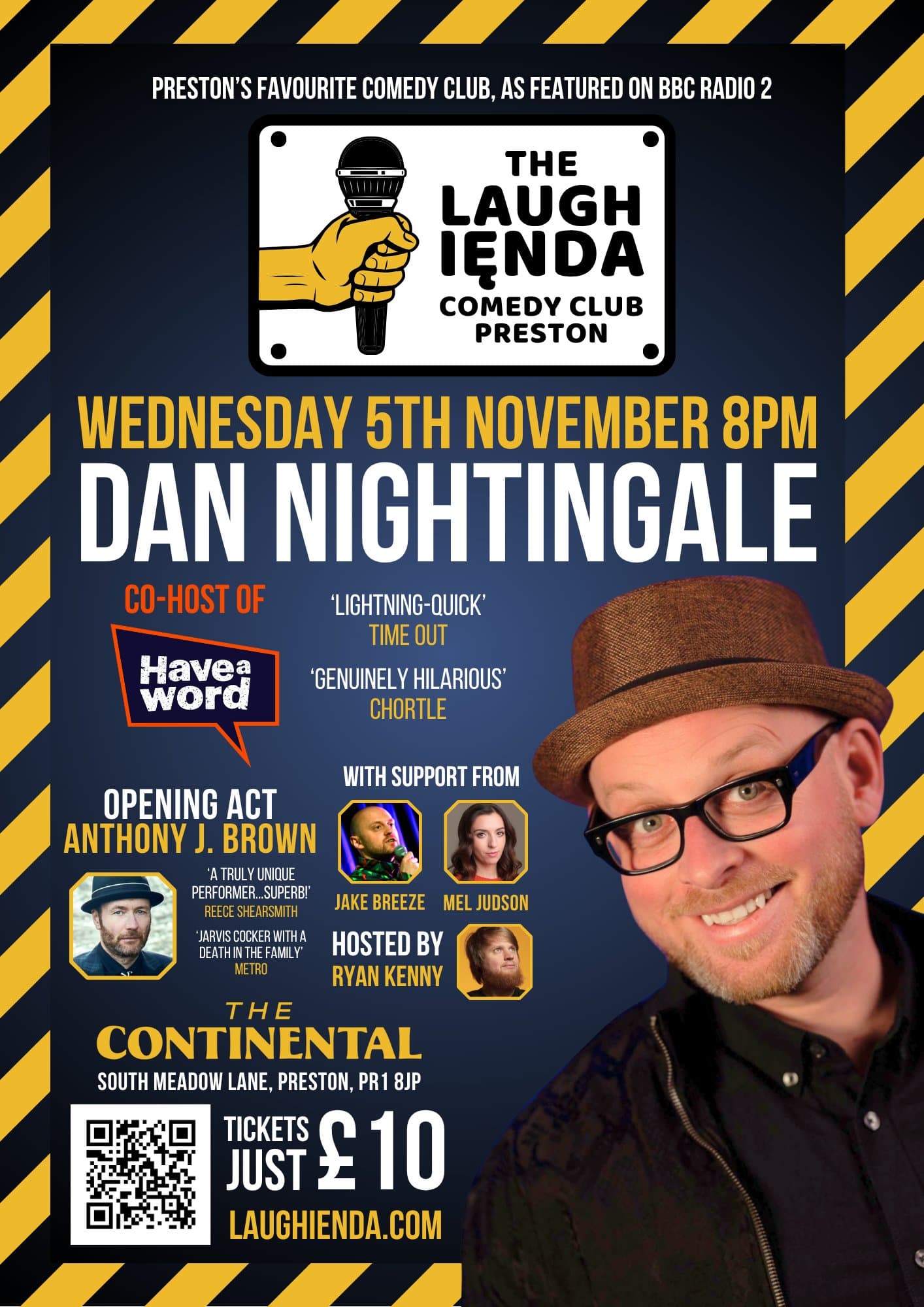 Award‑winning Laughienda lights up Bonfire Night with podcast titan and club destroyer Dan Nightingale (Have A Word) headlining. Expect whip‑smart observational blitzes and killer punchlines, plus the wonderfully macabre Anthony J. Brown, support from Jake Breeze and Mel Judson, and resident host Ryan Kenny keeping the sparks flying.
