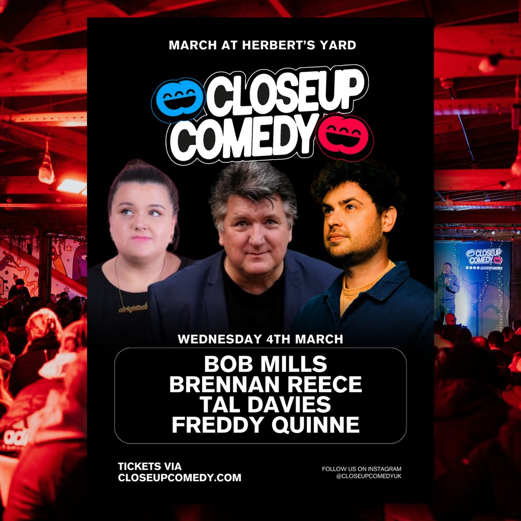 CLOSEUP COMEDY head back to Birmingham with a heavyweight pairing: the brilliantly sharp Bob Mills and crowd-favourite Brennan Reece, with a hilarious sprinkle of Tal Davies and host Freddy Quinne thrown in for good measure.