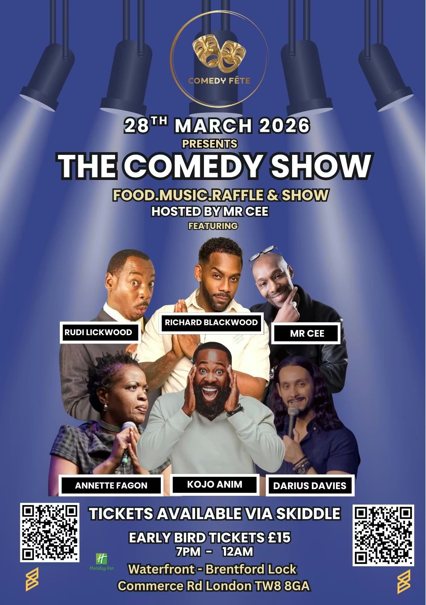 Comedy Fete bring their signature big-energy club night to Brentford Lock, delivering a proper Friday night lineup packed with circuit favourites and rising stars, from Richard Blackwood to Kojo Anim, Rudi Lickwood, Annette Fagon & Darius Davies, hosted by the one and only Mr Cee.