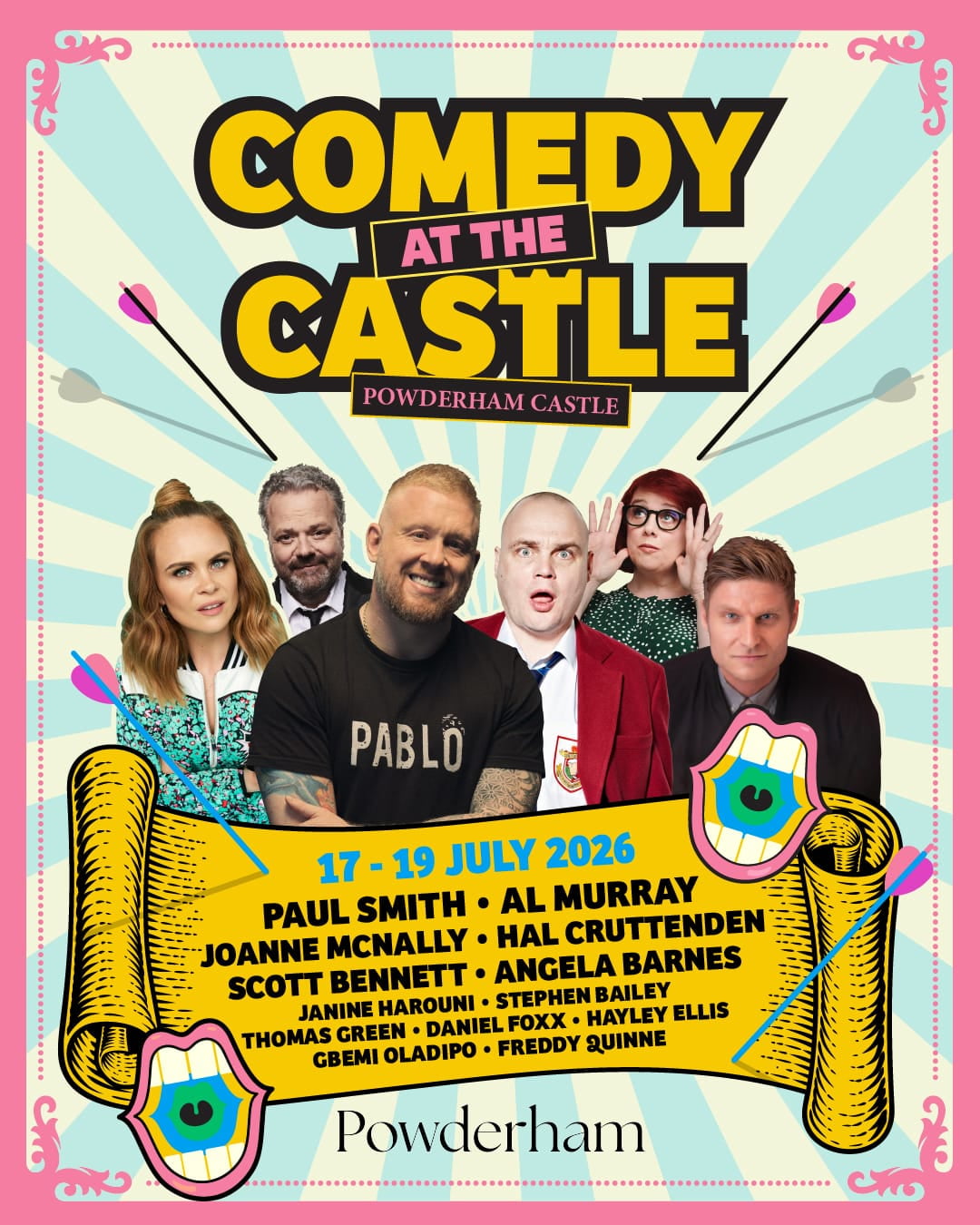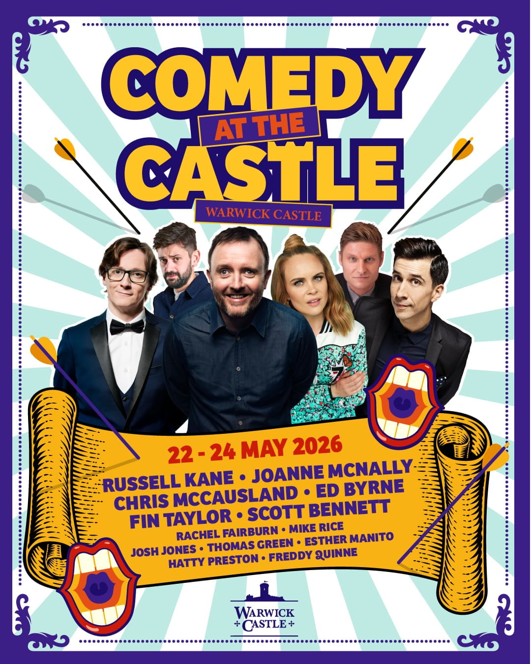 The following comedians are also confirmed for Comedy at the Castle 2026: Stephen Bailey, Angela Barnes, Ed Byrne, Scott Bennett, Hal Cruttenden, Larry Dean, Daniel Foxx, Hayley Ellis, Rachel Fairburn, Thomas Green, Nina Gilligan, Janine Harouni, Josh Jones, Esther Manito, Chris McCausland, Gbemi Oladipo, Freddy Quinne, Hatty Preston, Brennan Reece, Mike Rice, Lindsey Santoro, Paul Sinha, Fin Taylor, and Seann Walsh.