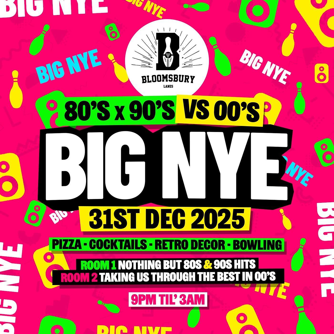 Throwing it back as we move forward into the new year is this one at Bloomsbury Lanes. In room one, you'll find 80s and 90s tunes, with 00s bangers in the second room. There'll be retro games, karaoke rooms, ping pong, pool, bowling lanes, pizza, and a massive countdown.