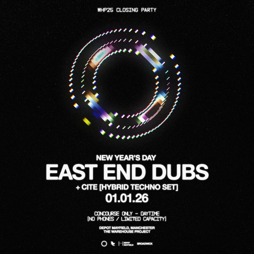 Coming through with their final event of the season, The Warehouse Project enlists East End Dubs for New Year’s Day shenanigans. The no-phones rave will see Dubs playing a hybrid techno set, mixing his usual sound with the sound of his CITE moniker.
