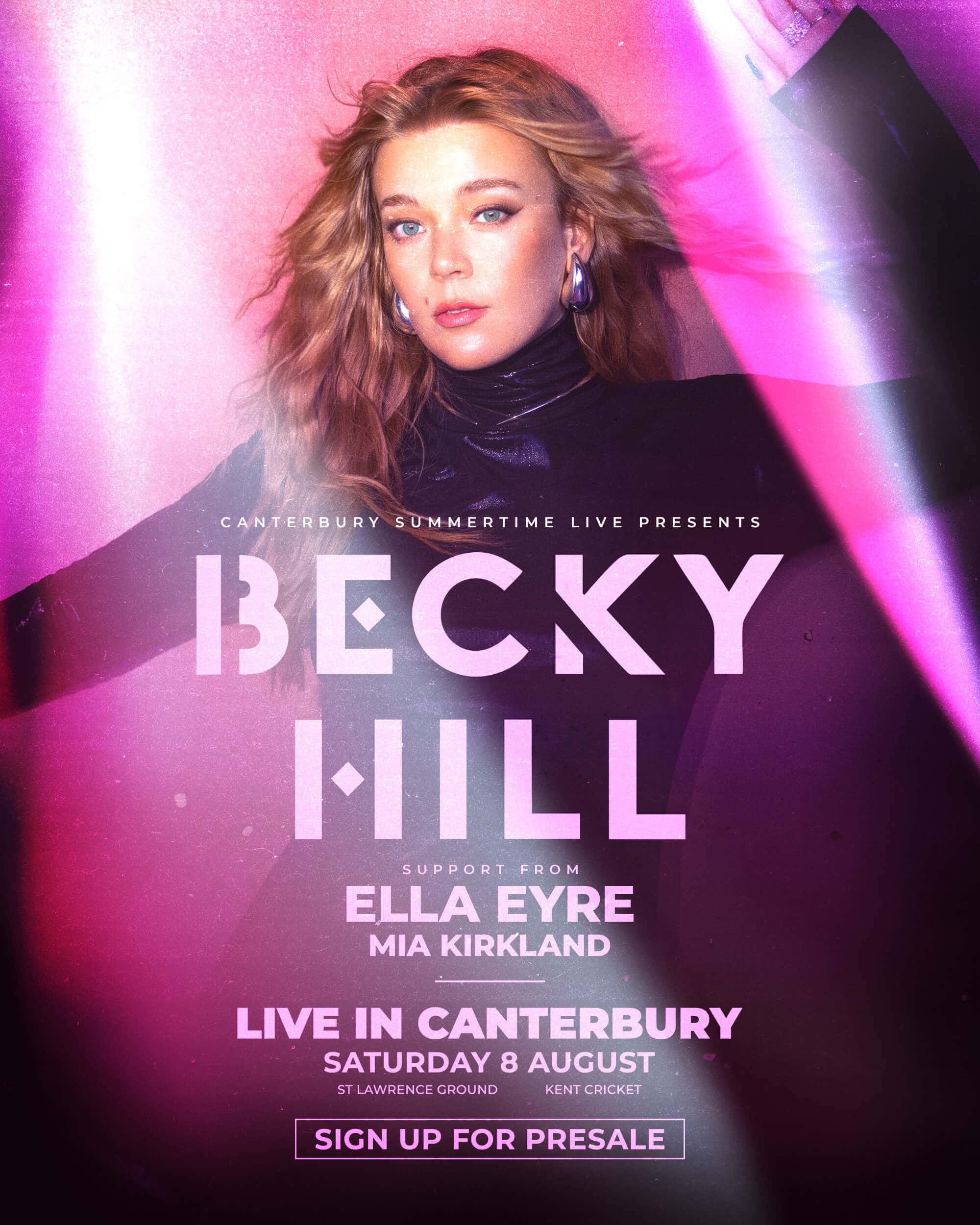 Becky Hill headlines an outdoor summer gig in Canterbury, bringing huge dance hits like ‘Disconnect’, ‘Afterglow’, and ‘Remember’, with a full live band. Ella Eyre and Mia Kirkland join the lineup as support.
