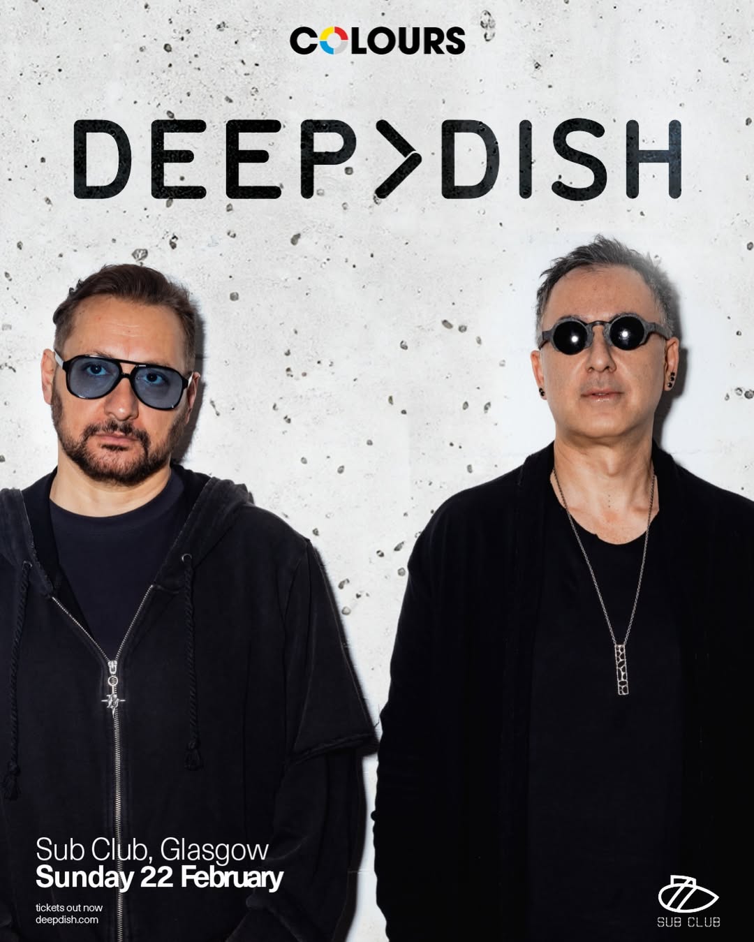 American duo Deep Dish make their Sub Club debut, bringing melodic house and techno to the iconic venue, brought to the ravers of Glasgow by Colours.