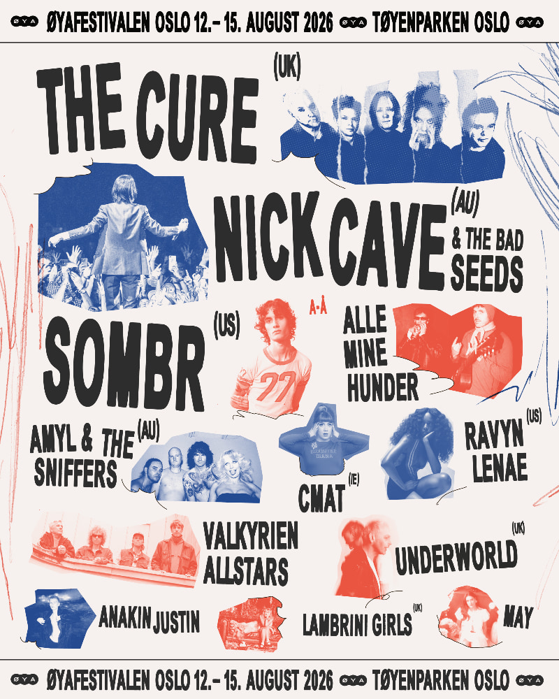 The multi-genre festival has announced Underworld, CMAT, Ravyn Lenae, Sombr (Norway debut, Friday headliner), Valkyrien Allstars, Alle Mine Hunder, Anakin Justin, and May.
