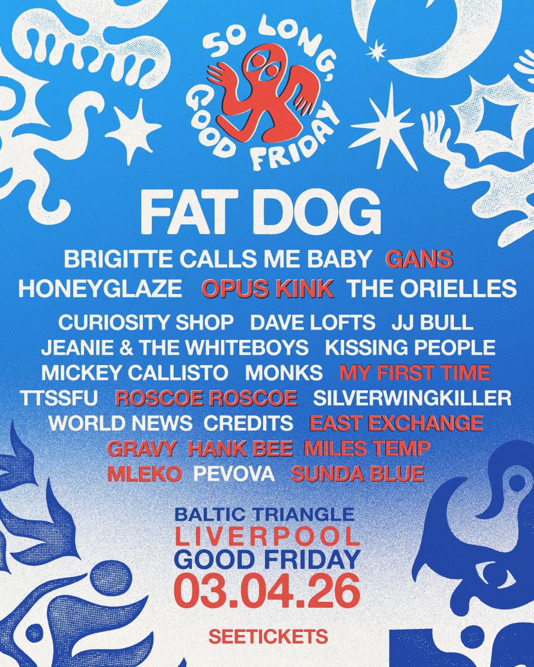 These new names join headliners Fat Dog, plus Honeyglaze, Brigitte Calls Me Baby, The Orielles, TTSSFU, Silverwingkiller, and more.