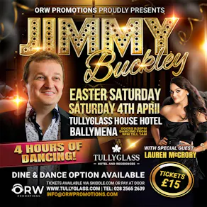 Get ready for an unforgettable Easter Saturday as Jimmy Buckley & Band return to light up the stage at the legendary Tullyglass Hotel & Residences, Ballymena.