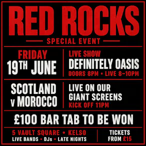 Definitely Oasis live at RED ROCKS, 19 June. World-class tribute, then Scotland v Morocco on the big screens. One night, no drop in energy.