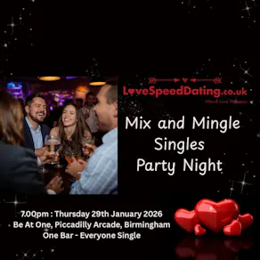 Get ready for one of Birmingham’s most fun and flirty nights out for singles — hosted by Love Speed Dating at the stylish Be At One Cocktail Bar, Piccadilly Arcade from 7:00pm–9:00pm (with the party continuing late into the night!).