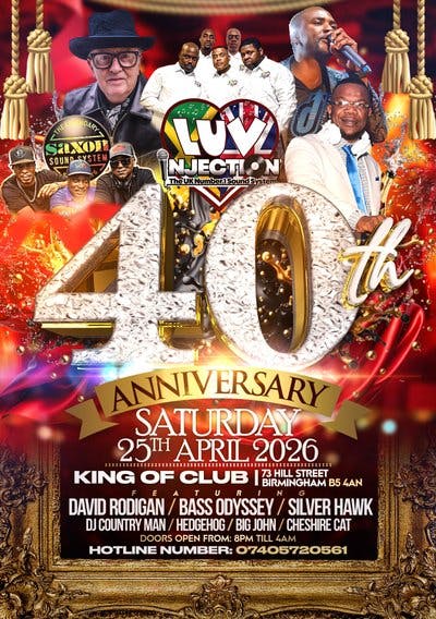 Join us for a massive anniversary celebration featuring top-tier sound systems, legendary selectors, and a full night of non-stop entertainment in the heart of Birmingham.