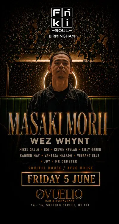 We have Masaski Morri from Japan & Wez Whynt From London and a Whole Host of Other Great DJs on The line up, we will be playing the best in deep soulful house & Afro house, across two floors. In a luxurious cocktail bar in the heart of Birmingham city centre