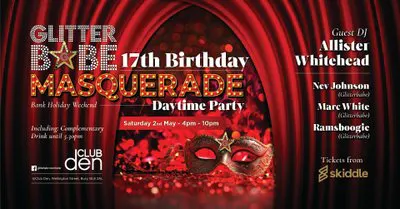 The wait is finally over. After years of unforgettable moments, iconic dancefloor memories, and pure feel-good energy, GlitterBabes returns to celebrate an incredible 18 years of music, magic, and community .On Saturday 2nd May 2026, GlitterBabes invites you to step into a world of masked elegance and daytime decadence for a daytime masquerade ball overflowing with glitz, glamour, and sparkle. Set within the plush yet retro surroundings of The Den nightclub , Bury, an iconic mill with plush booths and plenty of dance floor space, this landmark celebration promises to be a vibrant fusion of style, sound, and soul - a party that honours the past while dancing boldly into the future. From 4pm until 10pm, expect an electric atmosphere where timeless house grooves, and the dancefloor becomes a place of freedom, expression, and joy. This is more than an event - it's a moment in time, a coming-of-age celebration for one of the most loved names in the scene.Musically, the soundtrack to the day will be nothing short of exceptional. delivered by a lineup that truly understands how to move a crowd.
