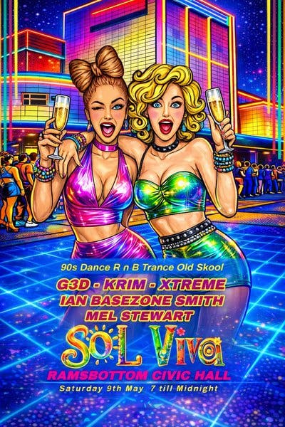 We're bringing the Sol Viva music vibe to Ramsbottom Civic Hall with 2 rooms, focused on the 90s, with a touch of early 00s