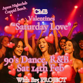 A valentines 90s Old School spectacular! . An event like no other, old school dance & R&B classics, Brought to you by The CMB. Headlined by the legendary B15 PROJECT with guest DJs RIF RAF, MIXTURE & MATT TERRIS. This will be upbeat classics from the very best era of music…. Not for just singles or those in a relationship, a night for everyone to come together & enjoy some nostalgic bangers & dance until you just can’t dance no more…