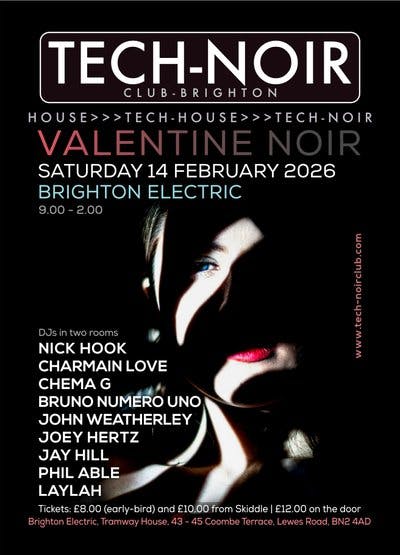 TECH-NOIR Club returns to Brighton Electric on Saturday 14th of February for a big VALENTINE NOIR party.