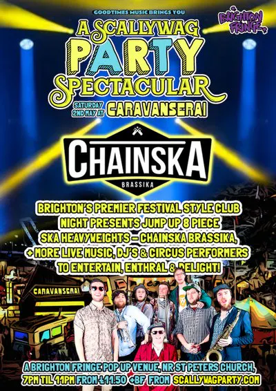 Chainska Brassika - We are so pleased to present this mischievous rabble from London who have been spreading their contagious horn driven ska anthems across the UK, mainland Europe and beyond for over a decade. They have toured with Madness, Gentleman’s Dub Club, Easy Star All Stars to name a few, as well as had shows at Glastonbury, Boomtown, Bestival and Notting Hill Carnival. These guys are the real deal, they've recorded at the legendary Harry J Studios in Jamaica, collaborated with reggae legends such as Toots Hibbert and some of the band regularly play with The Skatalites.