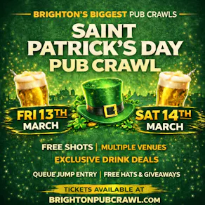 Brighton, get ready to start St Patrick's weekend in style. The SAINT PATRICK'S DAY PUB CRAWL is taking over the city on Friday 13th March for one huge night out by the sea.