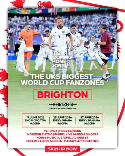 BRIGHTON. Watch every game LIVE at England's BIGGEST World Cup fan-zone in the heart of Brighton.