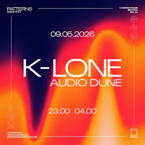 Patterns welcomes K-LONE; British DJ, producer and co-founder of the influential Wisdom Teeth label, playing sun-drenched sounds with rhythmic UK garage and techno influences, with support from Audio Dune.