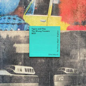 Tigers and Flies come together to play their new LP through in full. Complete and unfinished with jagged edges, horns blowing out hot steam in scales, and lyrics that flirt with clear purpose and sense. The group have more instruments than they have hands to play them, more cowbells than reason, and are trying to put the jigsaw of living together with pieces shaped uncannily like guitars, pin badges, records, roto-toms and tambourines.