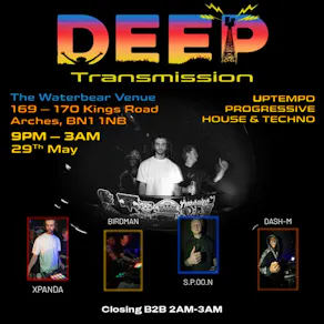 The Deep Transmission team returns to Waterbear late Spring Bank Holiday Friday.