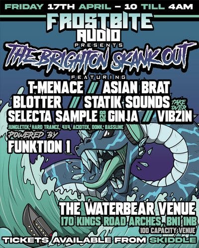 T-menace, Asian Brat, Blotter, Statik Sounds, Selecta Sample, Ginja, Vibzin. Multi genre madness all night
