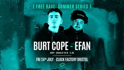 ![Bristol FREE Rave [Summer Series] - Burt Cope & Efan](https://skiddle.imgix.net/7/f/e/2208255_63765809_Bristol-FREE-Rave--Summer-Series----Burt-Cope---Efan_1024.jpg?auto=format%2Ccompress&width=auto&height=292)