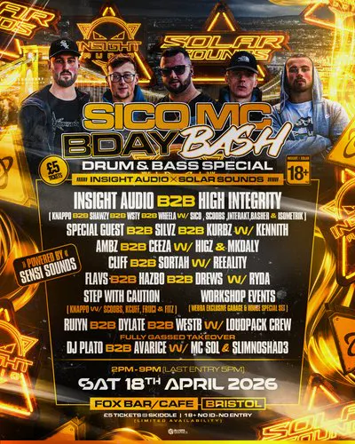 Insight Audio & Solar Sounds are bringing this huge lineup to Dareto's rooftop terrace on March 7th in celebration of Sico MC's birthday!