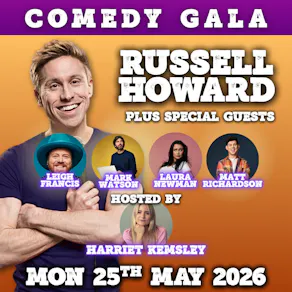 Star of The Russell Howard Hour, Russell Howard's Good News and so much more, Russell has performed to millions around the world and has had over 1 billion views online. We can't wait to welcome him as our headliner!