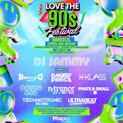 On Bank Holiday Sunday 30th August 2026, Prospect Building transforms into a full-blown 90s paradise as Love The 90s Festival lands in Bristol for an outdoor celebration like no other! 🎶⚡