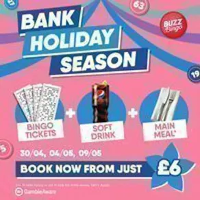 Looking for Bank Holiday plans? We've got you covered! Join us for a Booking Exclusive offer at Buzz Bingo! ☀️