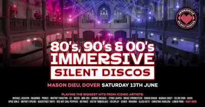 🎧 Immersive Silent Discos Presents: 80's, 90's & 00's at Maison Dieu, Dover ✨