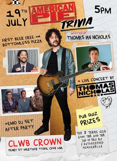 It's a Quiz Night like you've never seen before, featuring the one and only Thomas Ian Nicholas from American Pie & the Thomas Nicholas Band.
