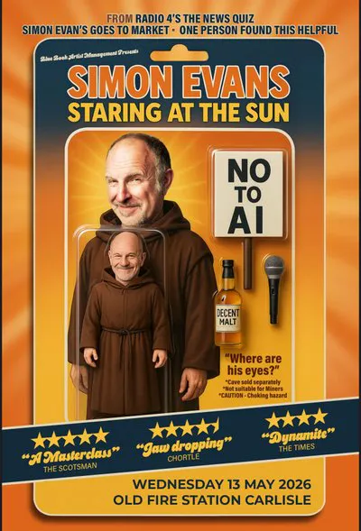 With growing evidence that we are living in a Computer Simulation – and a pretty glitchy, off-brand simulation at that – and the approaching watershed of the AI Singularity looming like a weirdly pixelated cumulo-nimbus on the horizon, BBC Radio 4 stalwart and veteran of a quarter century of highly acclaimed stand-up comedy Simon Evans is squinting at an uncertain future, and revisiting the blue remembered hills of his youth.