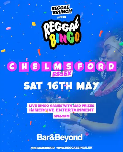 Get ready for an exciting, high-energy night! 🎉🔥 Reggae Bingo is coming to Chelmsford, Essex for the very first time this May – don’t miss it! 🎶✨