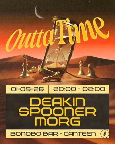The Clock Stops Here. Outta Time is a music-led movement dedicated to the soulful, high-energy evolution of house music. We are taking over the intimate upstairs space of Bonobo Bar and Canteen to create a night where the dance floor feels personal, the energy is electric, and the music is the only thing that matters.
